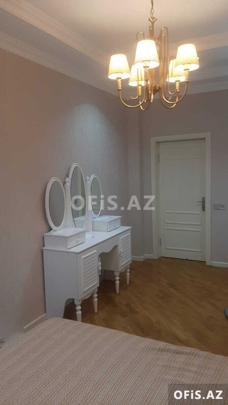- Yataq otağı üçün: geniş çarpayı (çarpayı örtüsü ilə), 5 qapılı ağ şkaf (güzgülü qapılar), tumba və uzun komod. Yataq otağı üçün qızılı detalla klassik çilçıraq.