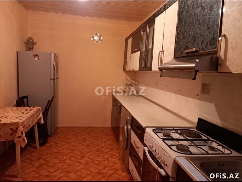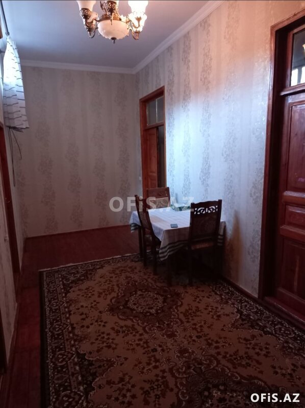 Heyet evidir, orta temirli, 3 otaqli menzil, metbexinde paltaryuyani, soyuducusu var. Zal otaqda kondisioneri var. Ev eslinde yerden hundurdedir. Hamam ve tualeti evin içindedir. Ozunemexsus balaca heyeti de var. Eşyalarla birge aile ve xanimlara kiraye verilir. Qiymet 550 manat. Suyu, qazi , ișigi daimidir.