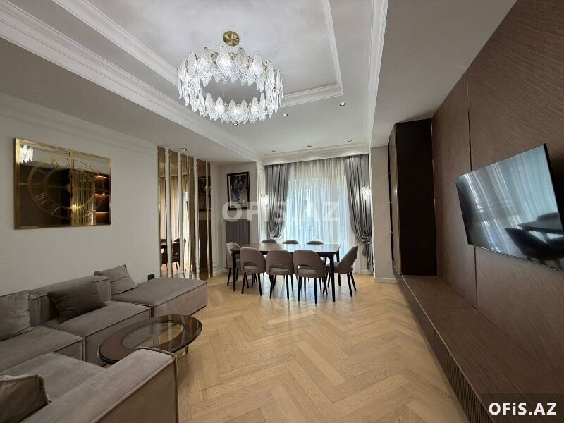 - Təsviri: Əla təmirlidir. Əşyalı satılır. Döşəmə parket, 2 s/q var, kombi sistemi və s. Mərmər blok, parking, geniş mühafizə olunan həyəti mövcuddur. Şəxsi qarajı var (qiymətə daxildir), qarajsızda satılır. Şirkət haqqı 1% (alıcıdan).