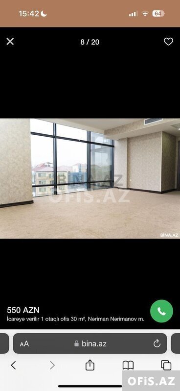 950 Azn / Ay Səbail rayonu, İçərişəhər metrosu, Nizami Gəncəvi heykəlinin yaxınlığı, ofis plazanın orta mərtəbəsində yerləşir. içərisində su, kanazasiya sistemi vardır. Mətbəx və qadın, kişi sanitar qovşağı vardır.bu plazada əlavə