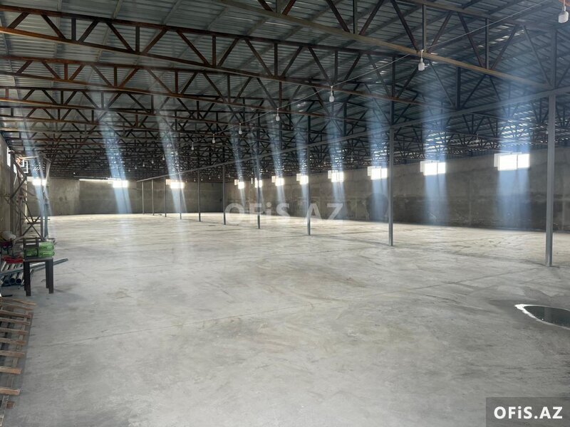 Ümumi sahəsi 360 kv.m. + 200 kv ofis. Su, işıq 3 faza, transformator. Ayrıca ofis binası. Anbar hər növ saxlanc və istehsal üçün yararlıdır. 24 saat