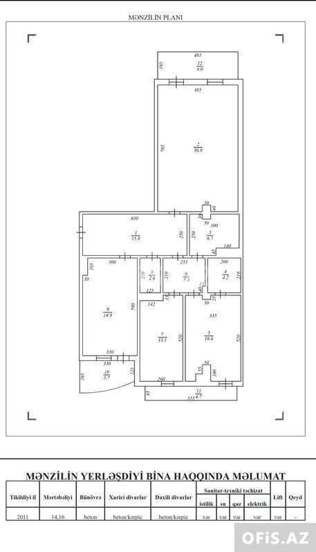 - Təsviri: Qanuni 3 otaqdır. Qaz su