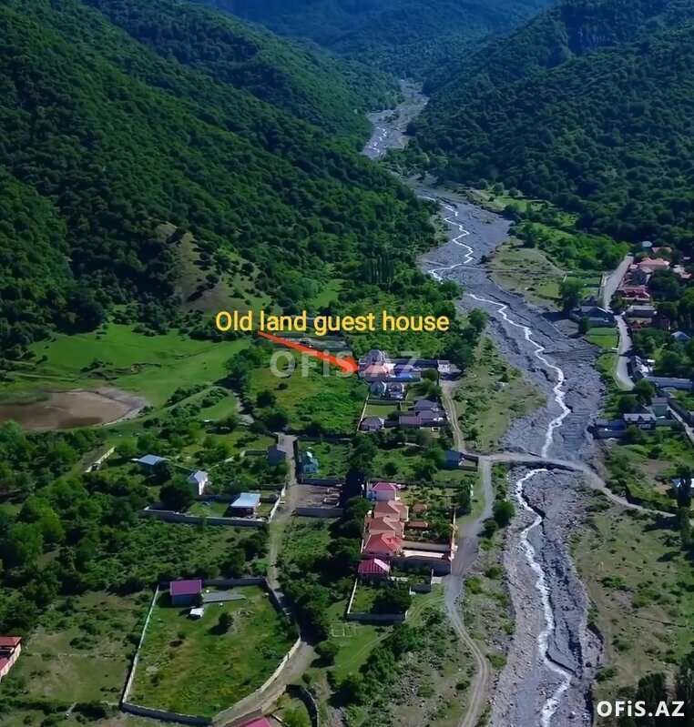 Geniş həyət, çay səsi, təbiət mənzərəsi