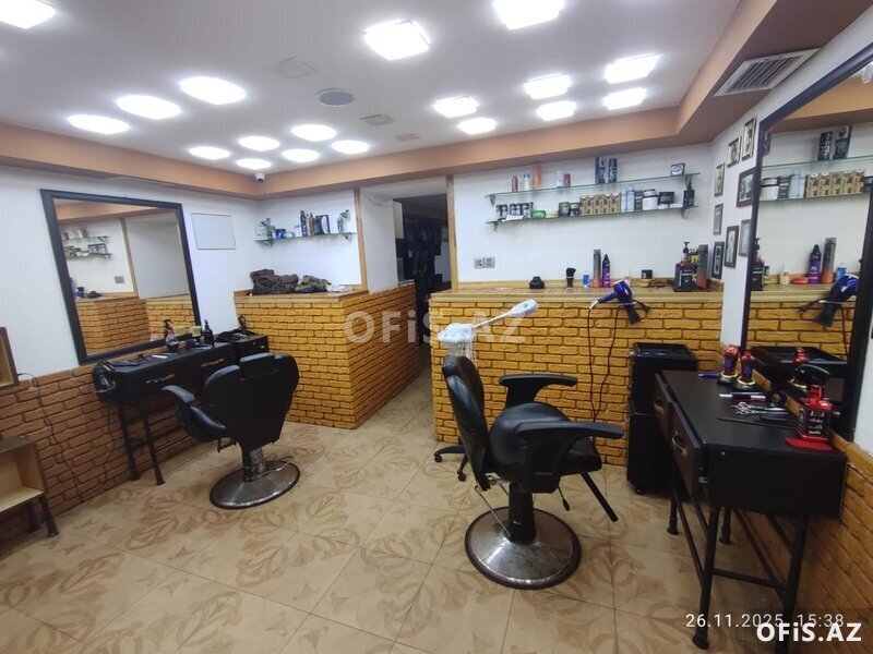 Elmlər Akademiyası m/st yaxınlığı, Hüseyn Cavid pr və Ə.Haqverdiyev küç. kəsişməsi, 5 stollu bərbərxana icarəyə verilir. 1 gözləmə otağı, 2-ci otaqda 4 stol və bir ayrı VİP otaqda da 1 stol var. Obyekt gediş-gəlişin gur olduğu yerdə yerləşir, prospekt boyu bütün obyektlər işləkdir.