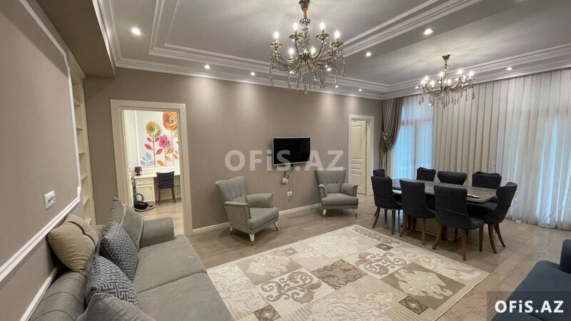 Şəhərin elit yerlərindən olan Elmlər Akademiyası m/st yaxınlığında, Renessans Palasla və Almaz Parkla üzbəüz Nazirlər Kabinetinin əməkdaşları üçün tikilmiş elit yaşayış kompleksində, yüksək keyfiyyətli materiallardan istifadə olunmuş super təmirli 4 otağa düzəldilmiş böyük terraslı mənzil bahalı əşyalarıyla birlikdə satılır. Mənzil 4-cü mərtəbədə (yaşayışın 1-ci mərtəbəsi) yerləşir, sahəsi 140 kv/m, 3 yataq otağı, 1 zal, 2 sanuzeldən (biri yataq otağında yerləşir) ibarətdir, 2 uşaq otağına giriş zaldandlr. İsti pol və kombi sistemi mövcuddur. Mənzilin təmirinə söz ola bilməz, iki ilə yaxindir təmir olunub və premium təmir olunub. Mənzil xüsüsi montaj olunmuş mebellər və şəkildəki bütün əşyalarıyla birlikdə satılır. Binanın lift enən mərtəbəsində, liftə çox yaxın şəxsi (sənədli) qaraj mövcuddur. O da qarşılıqlı razılıqla verilə bilər