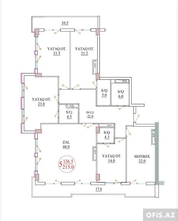 Otaq: 3 otaq – 1 mətbəx geniş, işıqlı və cox əlverisli planirovqası var skvaznoy