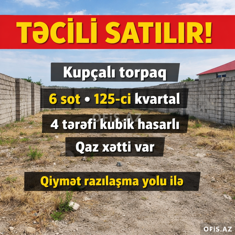 Şəki şəhərində Asan xidmətdən aşağıda 125-ci kvartalda 6 sot torpaq sahəsi satılır. 4 tərəfi bağlıdır. 2 tərəfi yola düşür. Kupçası var. Real alıcıya endirim olunacaq.