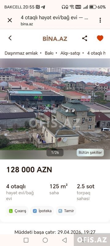 115000 Azn Hovsan ticaret merkeziyle üzbe üz olan baglarda 2.5 sotda inşa edilmiş 4 otaqli 110 kv, evmiz satilir.Evin yerleşme yeri cox superdi.Ev 7 daş kursude inşa edilib tam temirlidi butun aksesuarlari qoyulub.isitme sisdemi