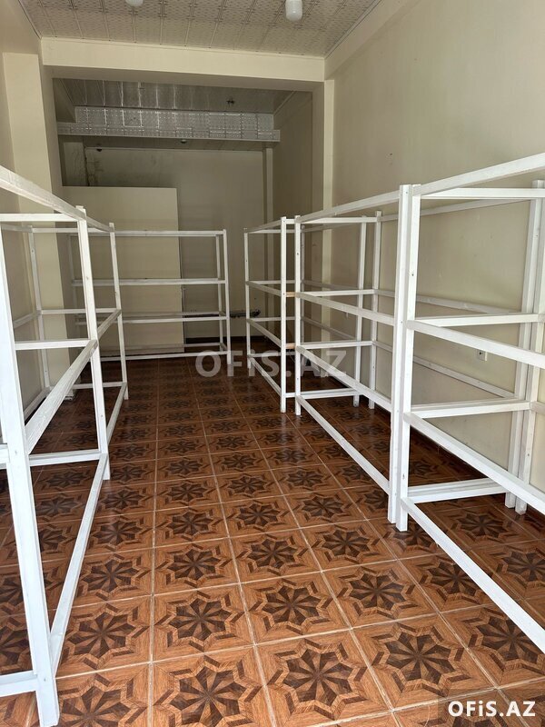 Ümumi sahəsi 840 kv.m. olan obyektin böyük vitrin şüşələri və hündür tavanı var.