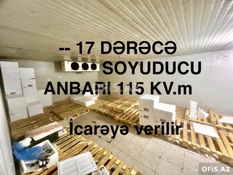 -17 DƏRƏCƏLİK SOYUDUCU ANBARI İCARƏYƏ verilir .Ət və süd məhsullarının saxlanılması üçün ( Ət, Toyuq, balıq, ağartı məhsulları , hazır paketlənmiş pol-fabrikat qidalar konservilər və s. digər uyğun mallar üçün əlverişli ) Ümumi sahəsi 215 kv.m-dir. ( 115 kv.m soyuducular təşkil edir(-17dərəcə), 100 kv.m isə boş hissə anbar , ofis və s. ) Suyu, işığı, qazı, kanalizasiyası, sanitar qovşağı, ofis otağı və geniş parkovkası mövcuddur. Aylıq icarə haqqı qiyməti 2300 Azn. Ünvan : Nərimanov rayonu , Ziya Bünyadov 2096.( Baksol )