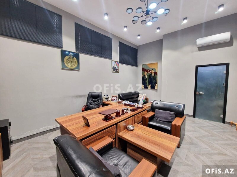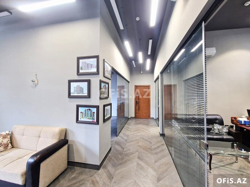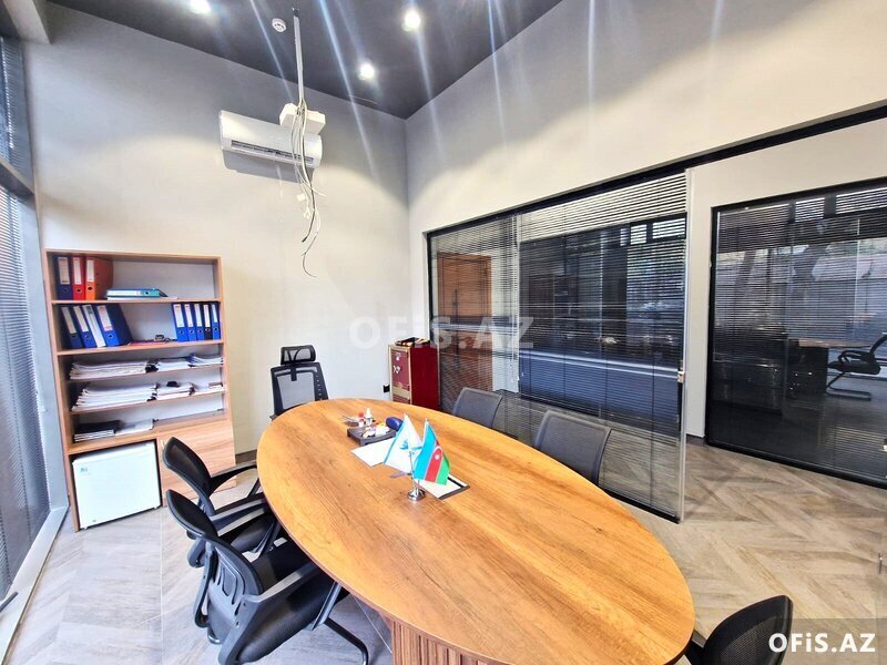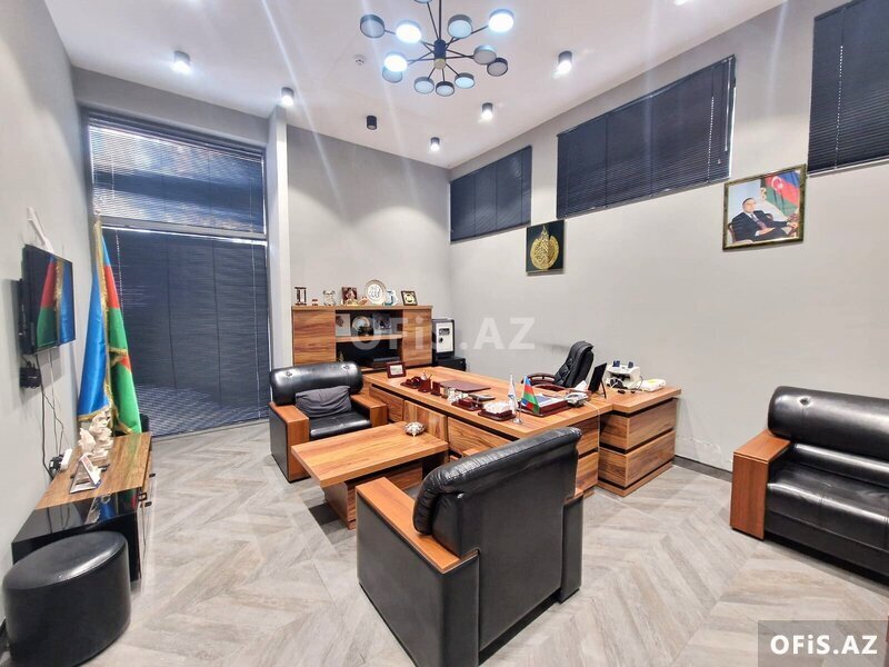 Ofis 1 müdir (+ müdirin istirahət otağı), 1 iclas otağı , 1 geniş, 1 kiçik sahəli otaq, mətbəx, 1 sanitar qovşağı (duş) və girişdə resepşndan ibarətdir. Ümumi sahəsi: 140 kv.m. Mərtəbə: 1/12. Yüksək sürətli Fiber Optik internet xətti, 2 ədəd Plazma Tv, mini telefon govşağı. İstilik sistemi "Kombi", 5 split-kondisionerlər. Müşahidə kameraları, yanğından mühafizə sistemi. İclas otağında proyekter mövcuddur. Quraşdırılmış mətbəx mebeli və texnikası.