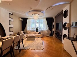 Частично с обстановкой. Зал, 3 спальни, 2 санузла и 2 балкона. Два скоростных, бесшумных лифта, подземный гараж, место для парковки, большой охраняемый двор с беседками, мраморное покрытие подъезда. Документ: КУПЧАЯ.