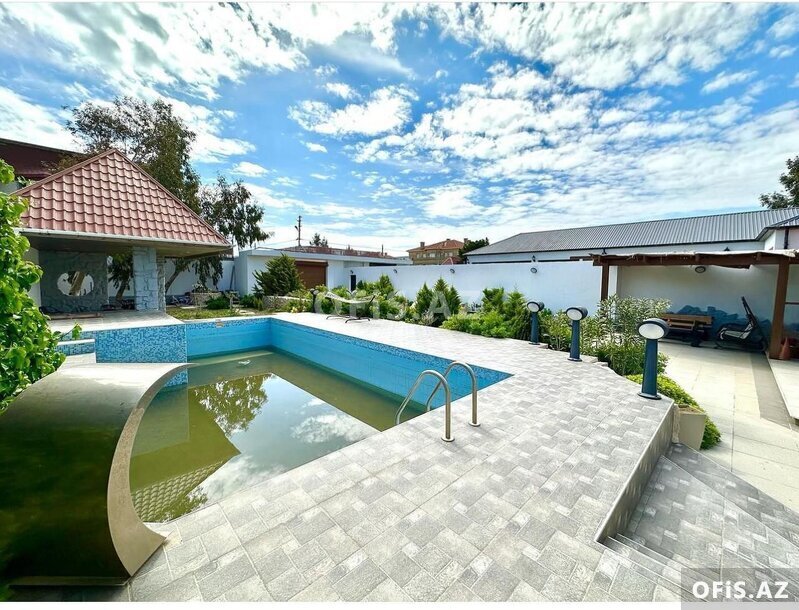 - Həyətdə dekorativ ağaclar və güllər əkilib, besedkası, hovuzu var.