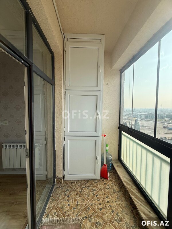 Sumqayıtın girişi , Bağça şəhərdə yerləşən yeni tikili 14 mərtəbəli binanın 9-cu mərtəbəsində xarici sahəsi 72.8 daxili sahəsi 60.3 kv olan, 2 otaqlı studia tam təmirli mənzil yalnız kredit