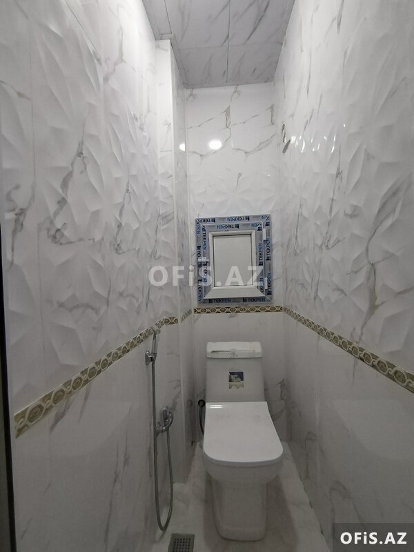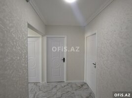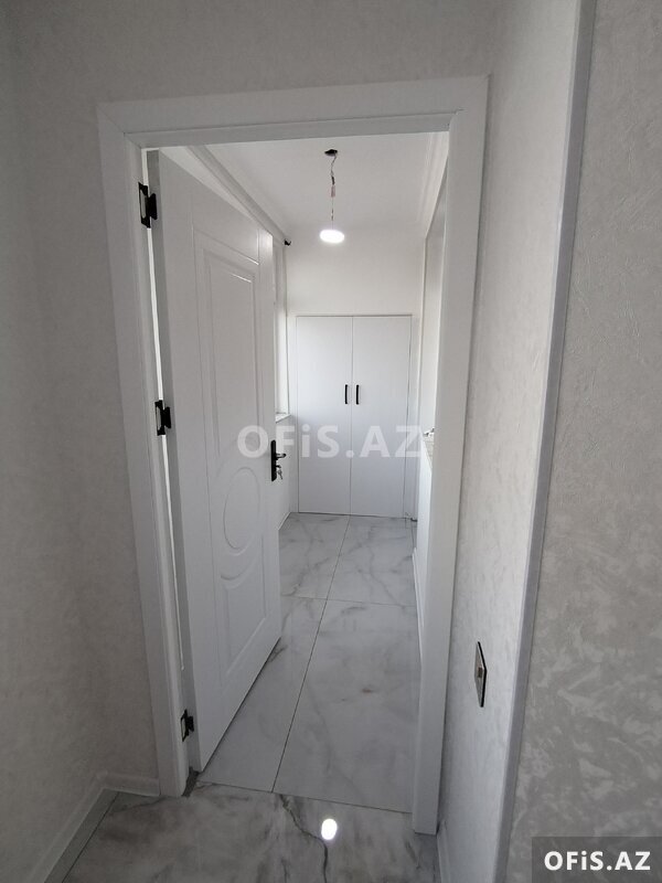 - Döşəmə: bütün otaqlarda açıq rəngli laminat, eyvanda iri ölçülü mərmər fakturalı kafel.