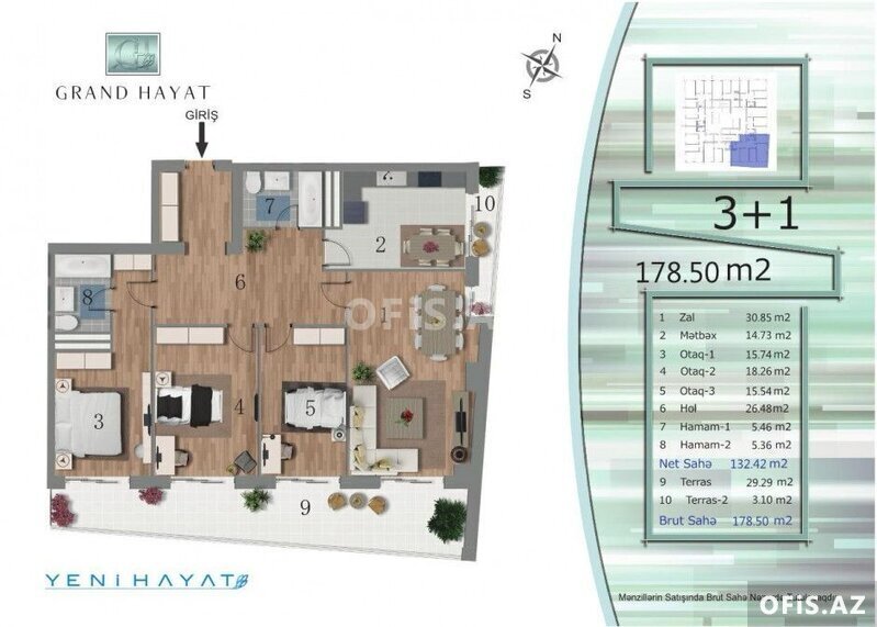 Mənzilin ümumi sahəsi 179 kv.m